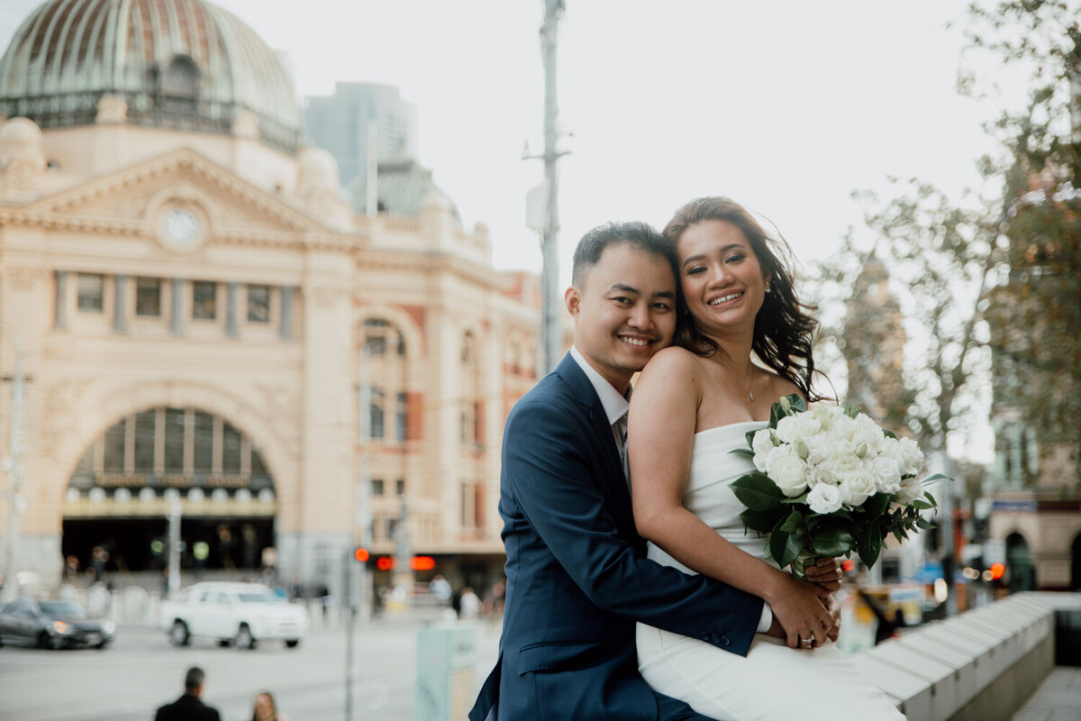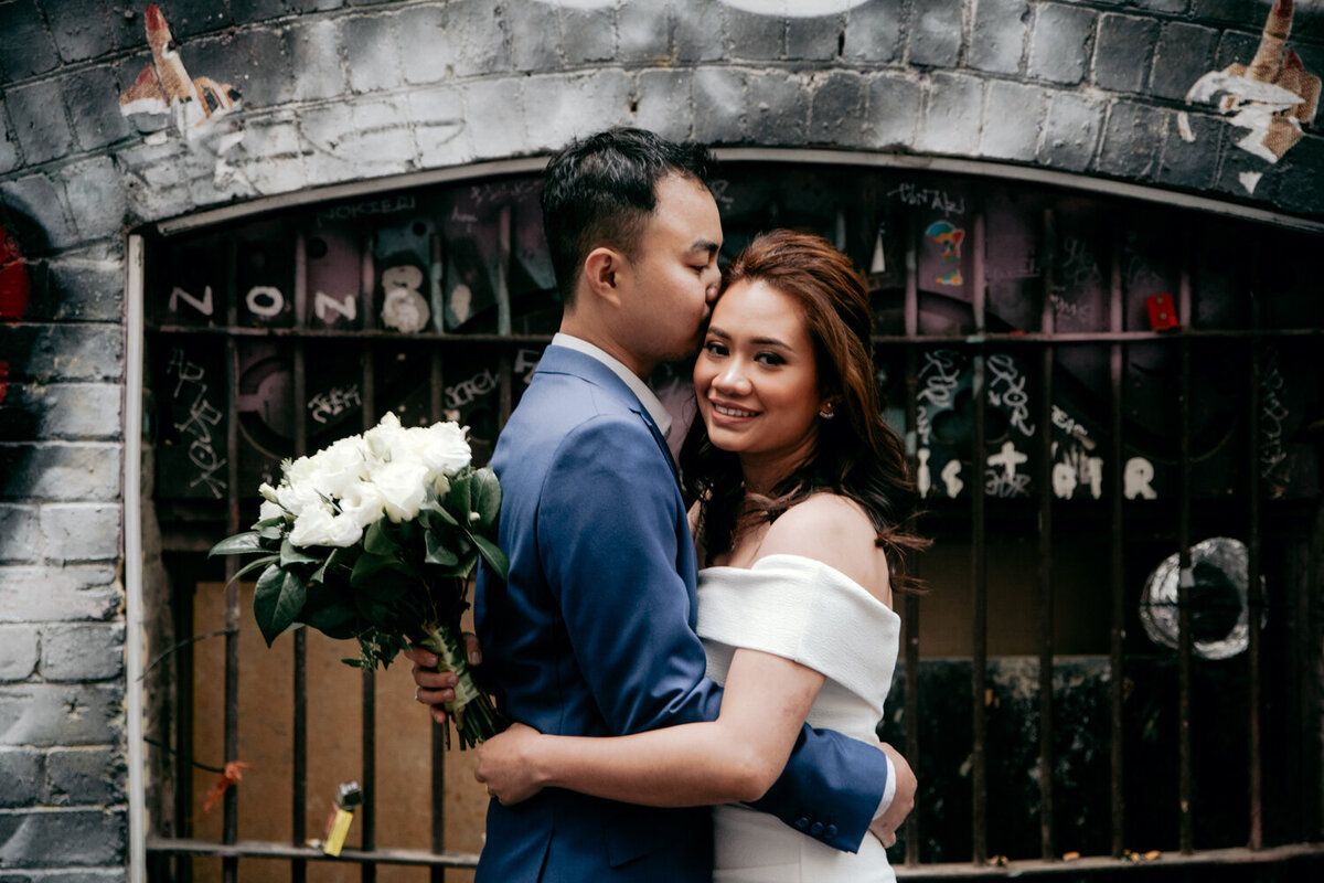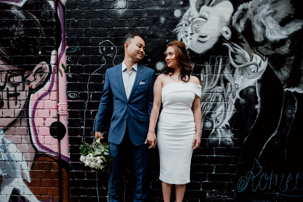 After intimate wedding ceremony in Treasury Building, we did some photos with friends, and went to Treasure Gardens to take some photos of them two. Then we walked to the city lanes with the couple for a moment alone just the two of them and some incredible portraits around the city corners, and colorful Melbourne vibe.